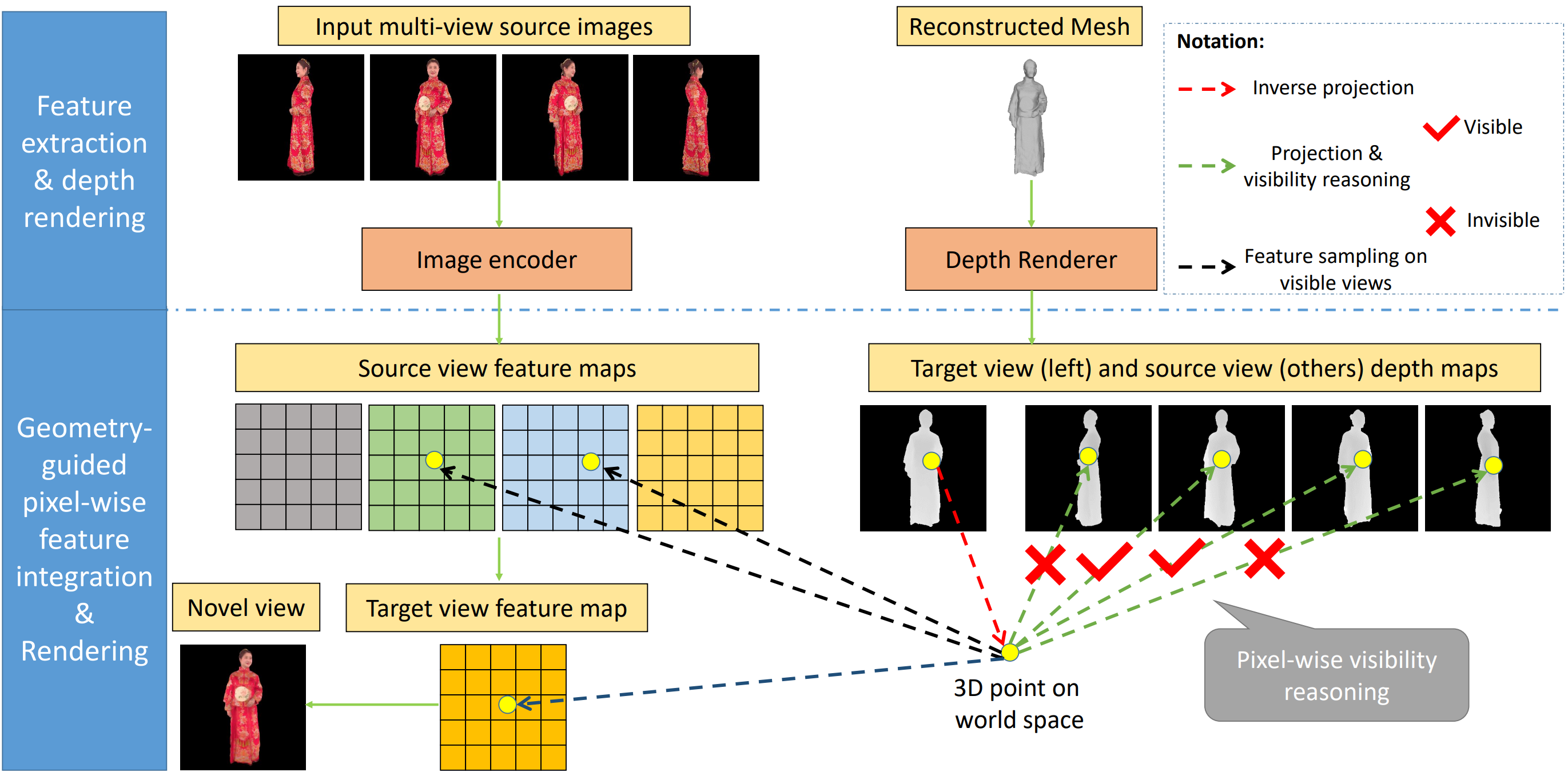 Tiansong Zhou, Jing Huang, Tao Yu, Ruizhi Shao and Kun Li, "HDhuman: High-Quality Human Novel-View Rendering From Sparse Views," in IEEE Transactions on Visualization and Computer Graphics, vol. 30, no. 8, pp. 5328-5338, 2024..