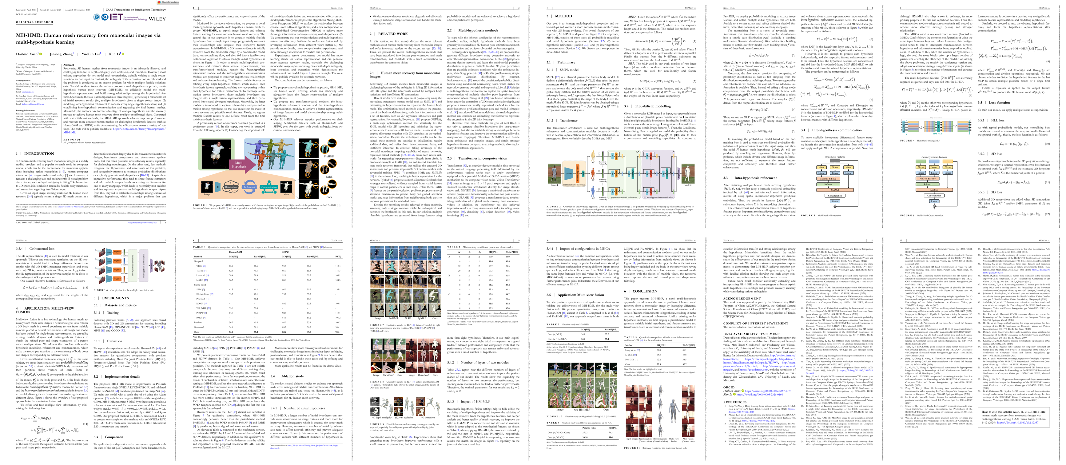 Haibiao Xuan, Jinsong Zhang, Kun Li. MHPro: Multi-Hypothesis Probabilistic Modeling for Human Mesh Recovery. Proceedings of the CAAI International Conference on Artificial Intelligence (CICAI), Beijing, China. 2022.