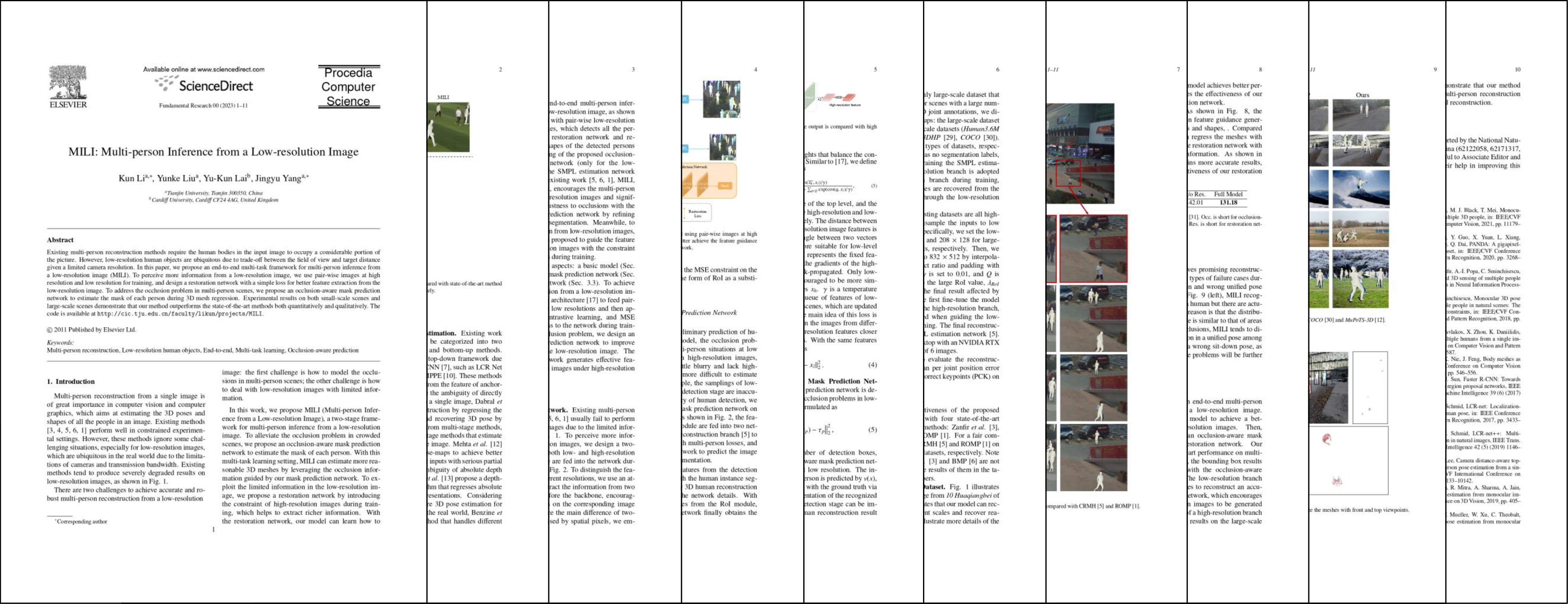 Kun Li, Yunke Liu, Yu-Kun Lai, Jingyu Yang. "MILI: Multi-person Inference from a Low-resolution Image". Fundamental Research, 2023.