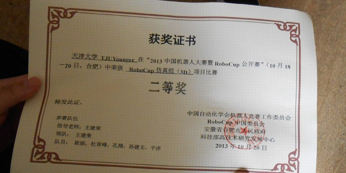 | 第十五届挑战杯天津市大学生课外学术科技作品竞赛 | 省部级 | 二等奖 | 1项 |