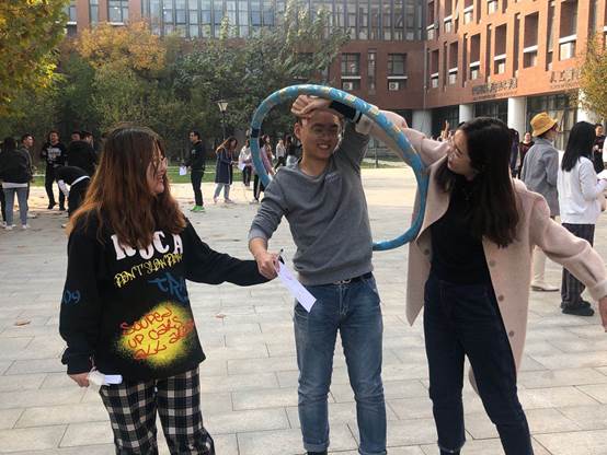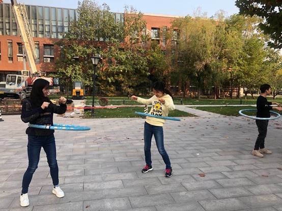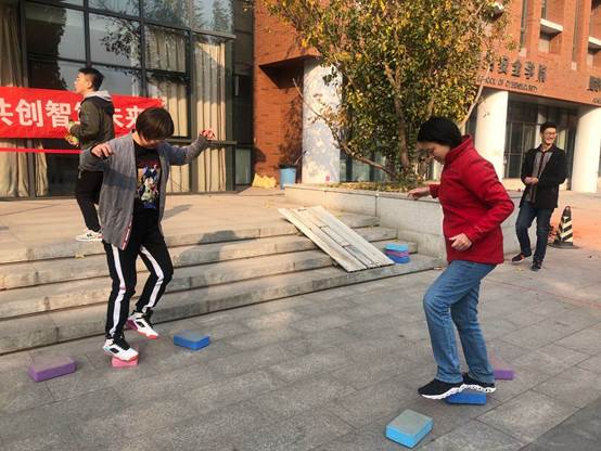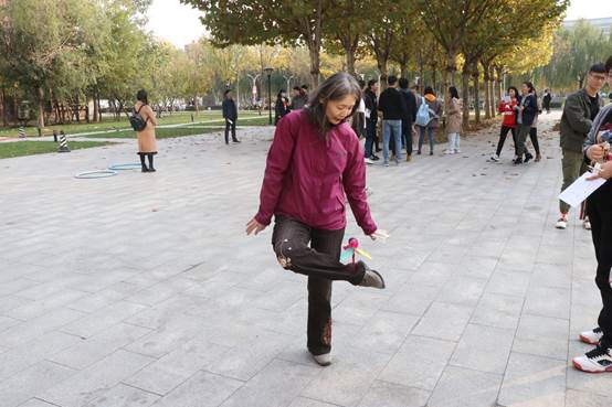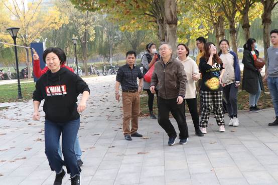 在活动现场,教职工积极参与,更有不少教师奔跑、流汗、欢笑的剪影。踢毽球、螃蟹运球、穿越哗啦圈、跳长绳、摸石过河等一个个趣味十足的项目,一次次充满默契的挑战,一张张笑容洋溢的脸庞,教师们一同参与互动,纵身影于大块,携胜友以驰骋,于蓝天红叶间、清风朗日里,挥洒出北洋园初冬别样的写意。