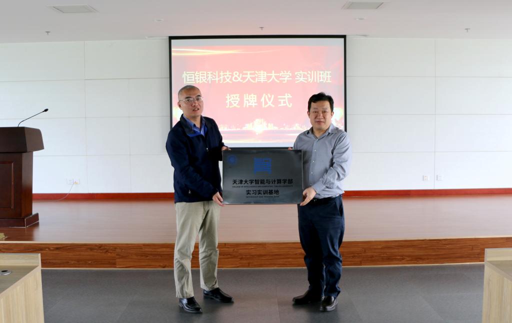 (通讯员 杜萱)5月6日上午,成人影视片 -恒银科技实习实训基地揭牌暨实训开班仪式在恒银金融科技股份有限公司举行。恒银科技常务副总裁、研究院院长张云峰,成人影视片 副主任、软件学院院长陶文源,软件学院副院长章亦葵一行以及成人影视片 实训学生出席了仪式,并于会后进行了座谈。