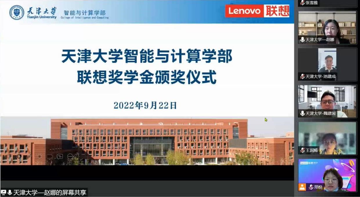(通讯员 聂珍珍)2022年9月22日晚上,成人影视片 举办“联想奖学金”线上颁奖仪式。联想研究院高校合作高级经理李跃华、人力资源业务伙伴(HRP)Lisa、创新孵化主管邢悦,成人影视片 党委书记魏建国、党委副书记赵娜、学生工作办公室主任赵义等领导老师,以及全体获奖学生和部分对联想集团感兴趣的同学参加了本次颁奖仪式。