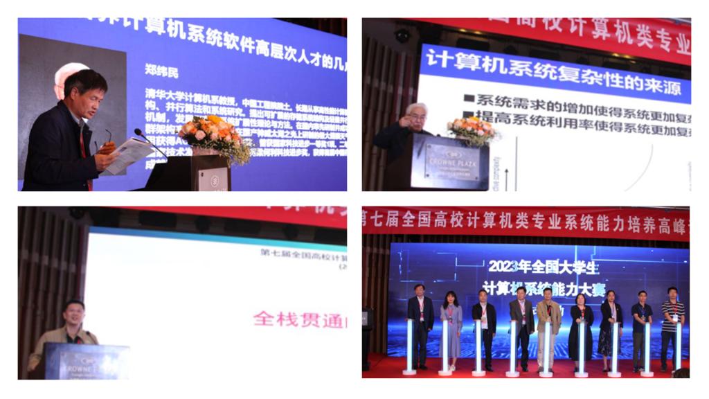 第一阶段的主题报告由西北工业大学周兴社教授主持。中国工程院院士、清华大学郑纬民教授作“关于培养计算机系统软件高层次人才的几点考虑”的报告。教育部高等学校计算机类专业教学指导委员会副秘书长高小鹏教授作“全栈贯通的系统能力培养”的报告。第一阶段的主题报告之后,举行了隆重的颁奖、授牌和全国大学生系统能力培养大赛启动仪式。