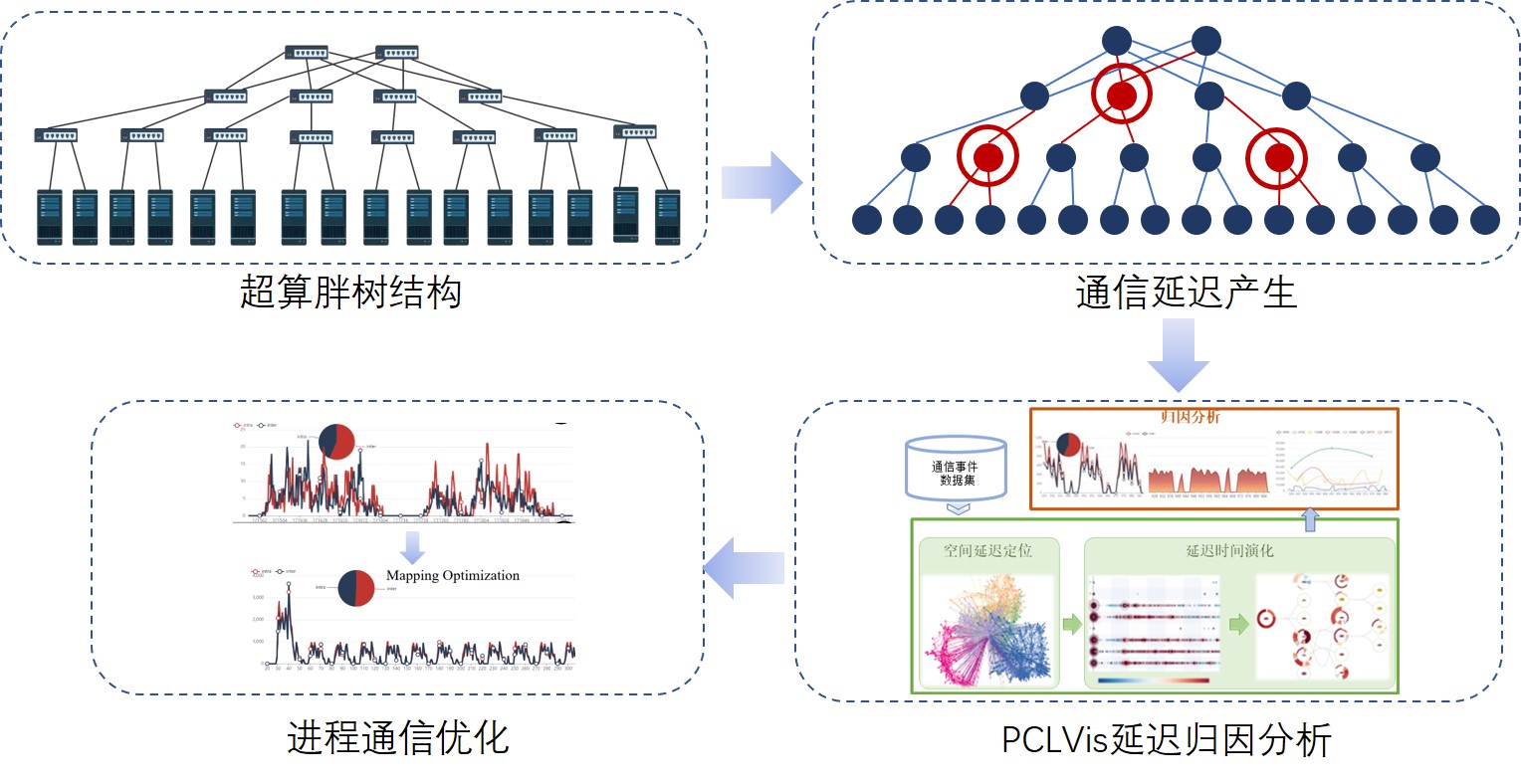 该系统可以让领域专家充分利用我国世界领先的超算硬件资源,以非root用户探索网络延迟的所在,并为用户提供可能的解决方案,助力领域专家构建更大规模的高精度仿真,由成人影视片 毕重科副教授负责的VIS&HPC实验室研发。
