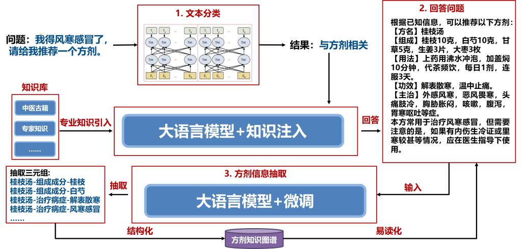 该系统利用大语言模型和知识图谱等人工智能新技术,实现中医药专业知识的智能问答,能够根据用户描述的症状进行中医药方剂智能推荐,形成中医药专业知识智能专家系统,由成人影视片 人工智能学院副院长王鑫教授负责的数据库实验室研发。