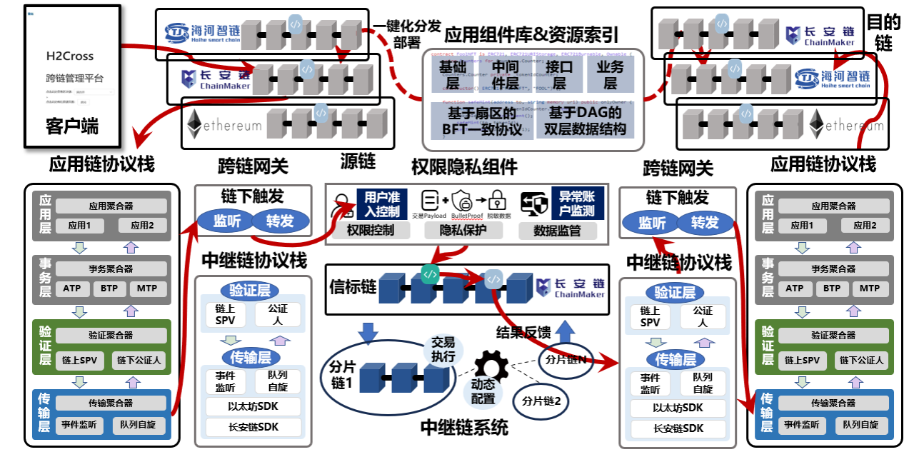 针对区块链系统存在多链异构性、交易复杂性、信任风险大等问题,依托国家重点研发项目,研发了H2Cross跨链互通平台,采用高可扩展分片并行跨链架构、分层解耦的跨链交互协议栈模式,实现了高性能、强监管、自适应的跨链互通模式,并在供应链、司法存证领域提出了安全可靠的解决方案。