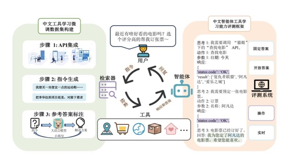 从工具学习数据、智能体框架、工具学习能力评测等方面着手,研究了大模型驱动的App应用智能体,取得多项创新突破:构建了面向中文工具学习的微调数据集,研发了配套的多轮工具调用标注算法,显著降低了标注成本;研制了中文智能体工具调用以及学习能力测评框架,提升了大语言模型的工具选择能力和指令完成能力,并全面评估其工具学习能力。