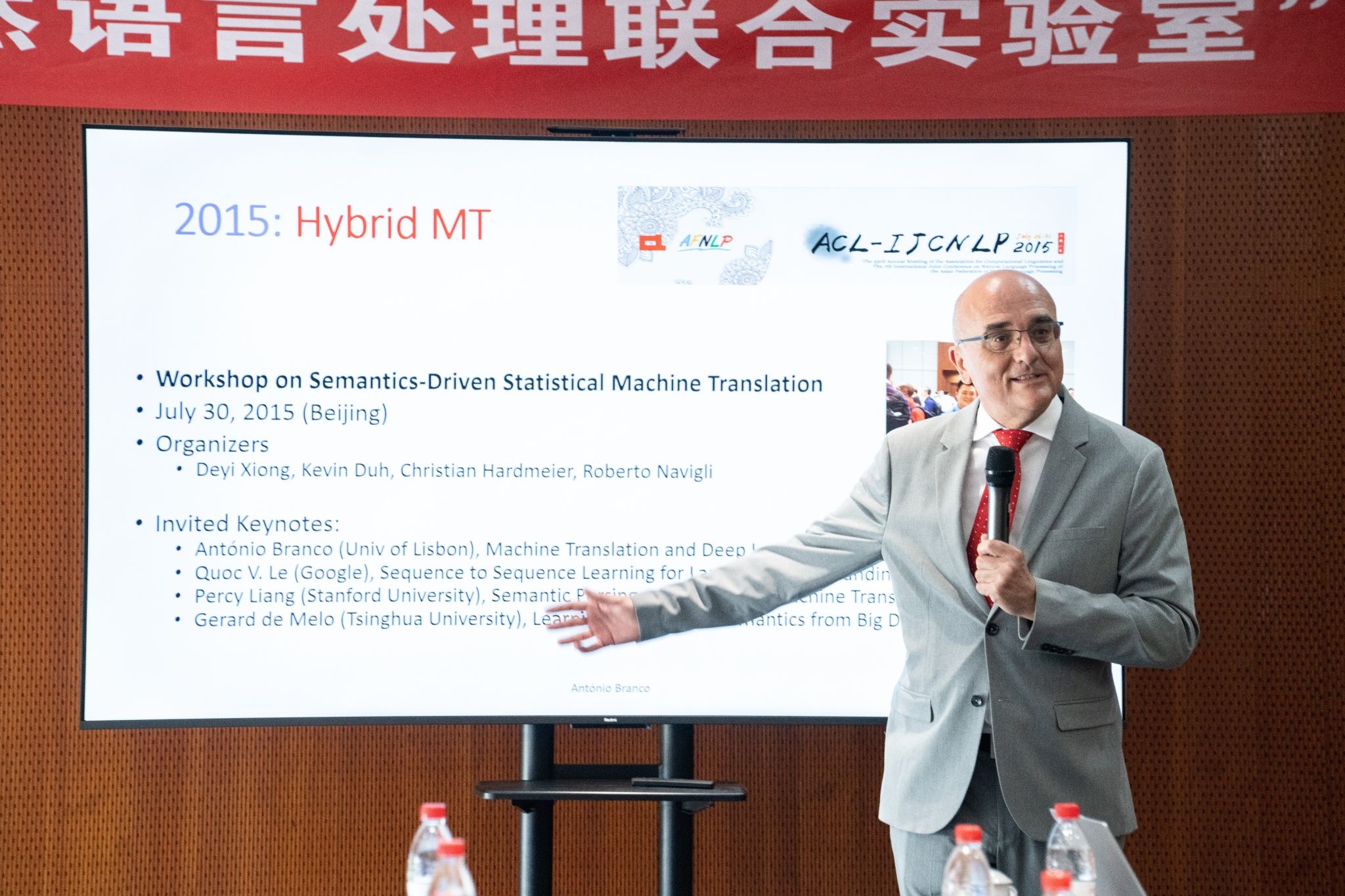 项目中方负责人熊德意教授介绍了该项目的研究目标和内容,以及项目实施方案。项目葡方负责人António Branco教授介绍了中葡多语言自然语言处理领域的合作基础。与会专家就项目成果开源、国际合作等具体工作提出了宝贵的意见和建议。