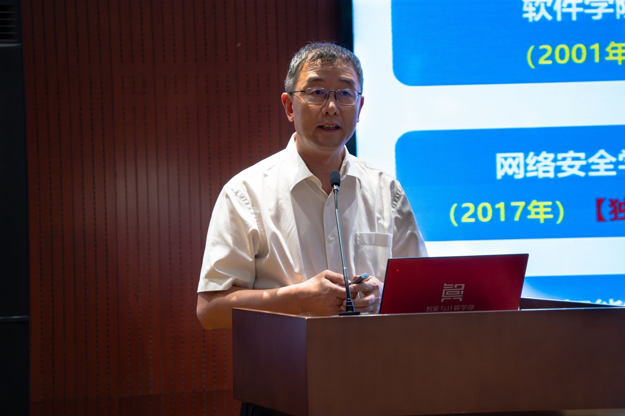 学部党委书记魏建国在致辞中,对学院近年来取得的成就给予了高度评价,并客观分析了当前存在的问题与不足。他号召,全院教职工要深入学习贯彻党的二十大和二十届三中全会精神,紧抓时代机遇,借助一流网安学院建设契机,勇于担当,积极作为,把个人发展与、学科、学部、学校发展结合;将课程思政理念融入教学各环节,全面拓展教育的育人视野;守好师德师风底线,争做大先生;不断提升学部综合实力和核心竞争力。