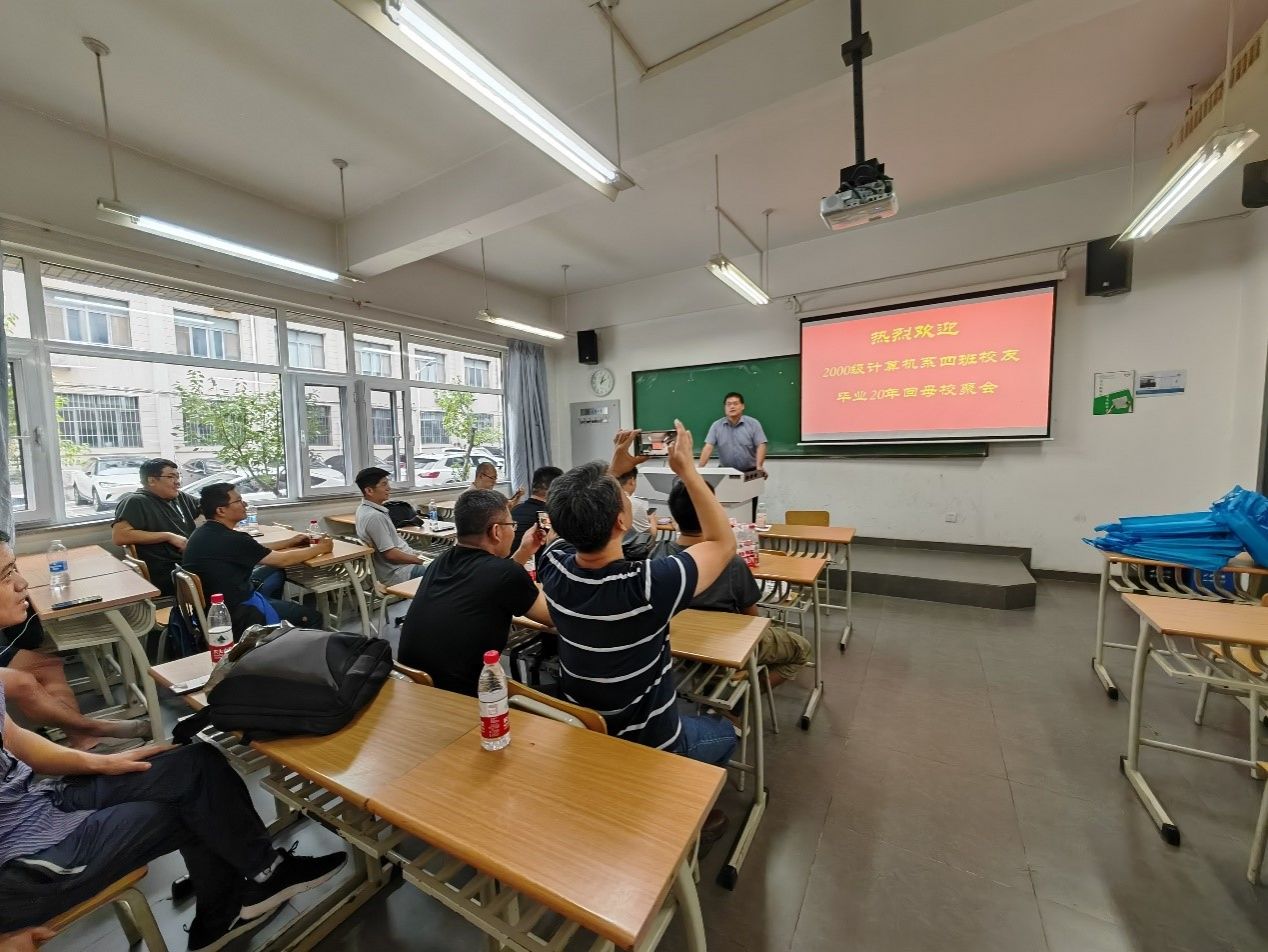 (通讯员 王磊)九月的北洋园,秋风送爽,天高云淡,26教学楼的一间教室里,不时传来阵阵欢声笑语。这里正在举行一场特别的聚会,成人影视片 计算机系2000级四班14位校友从祖国各地赶来,相聚北洋,追忆往昔峥嵘岁月,回望二十年风雨兼程,展望母校未来辉煌。