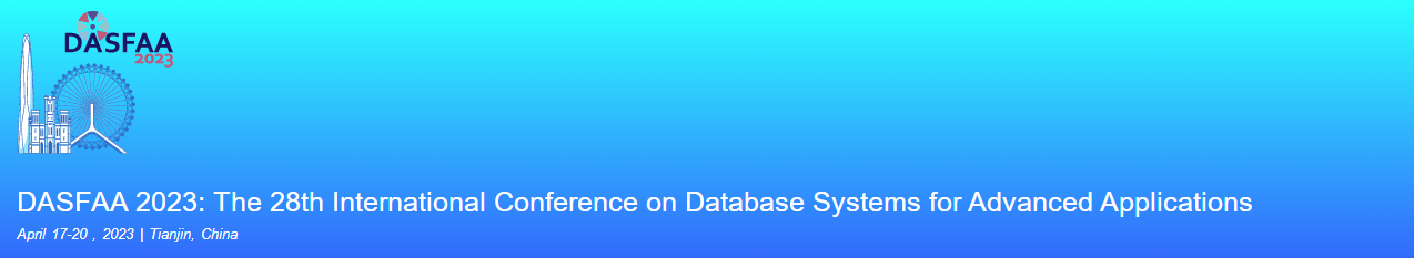 Welcome to the 28th International Conference on Database Systems for Advanced Applications (DASFAA-2023), April 17-20, 2023, Tianjin, China.