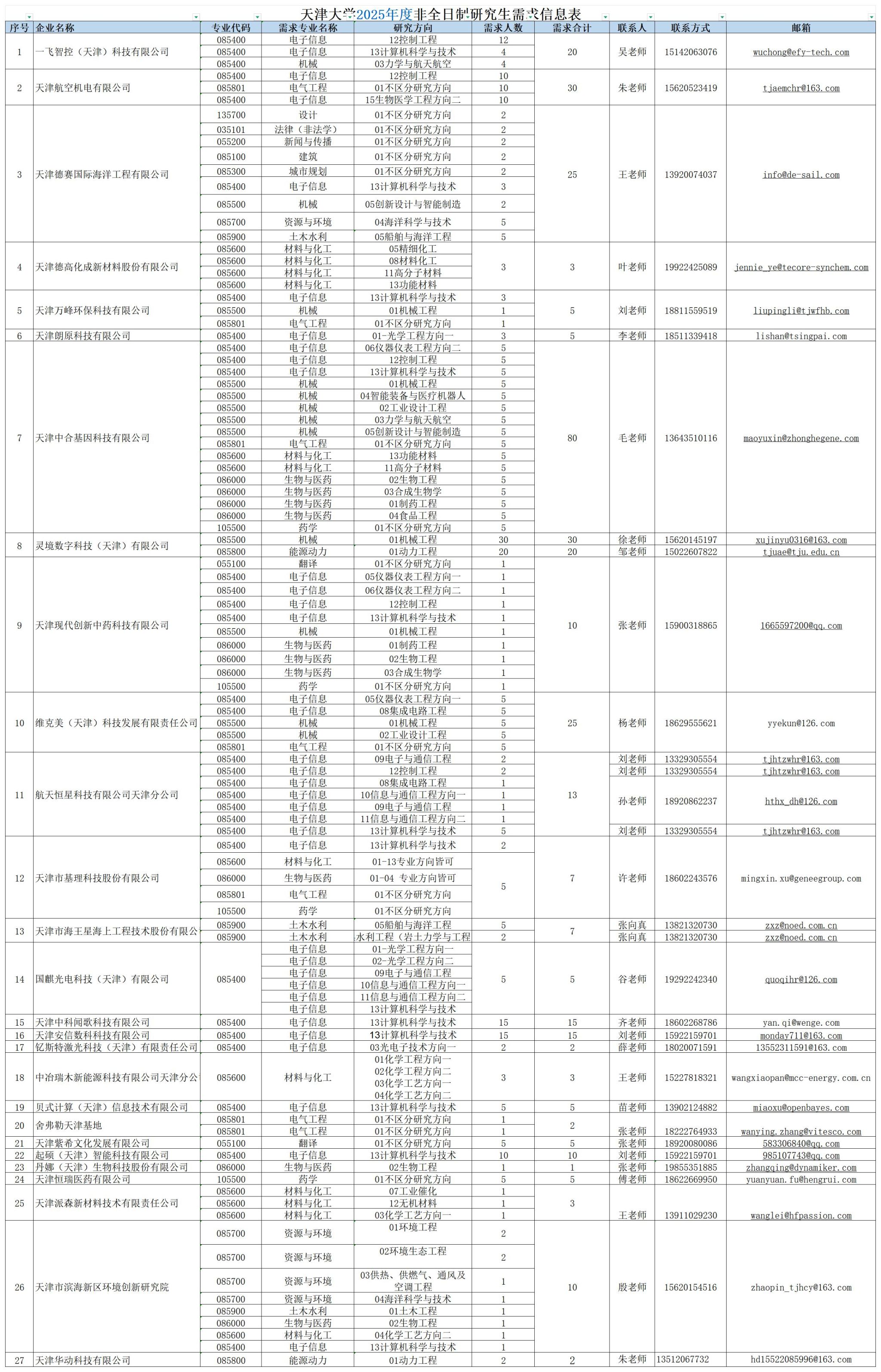 初试成绩通过天津⼤学校线的考生,可先在企业⼊职成为定向生,后通过学校复试调剂为非全日制专业学位研究生。