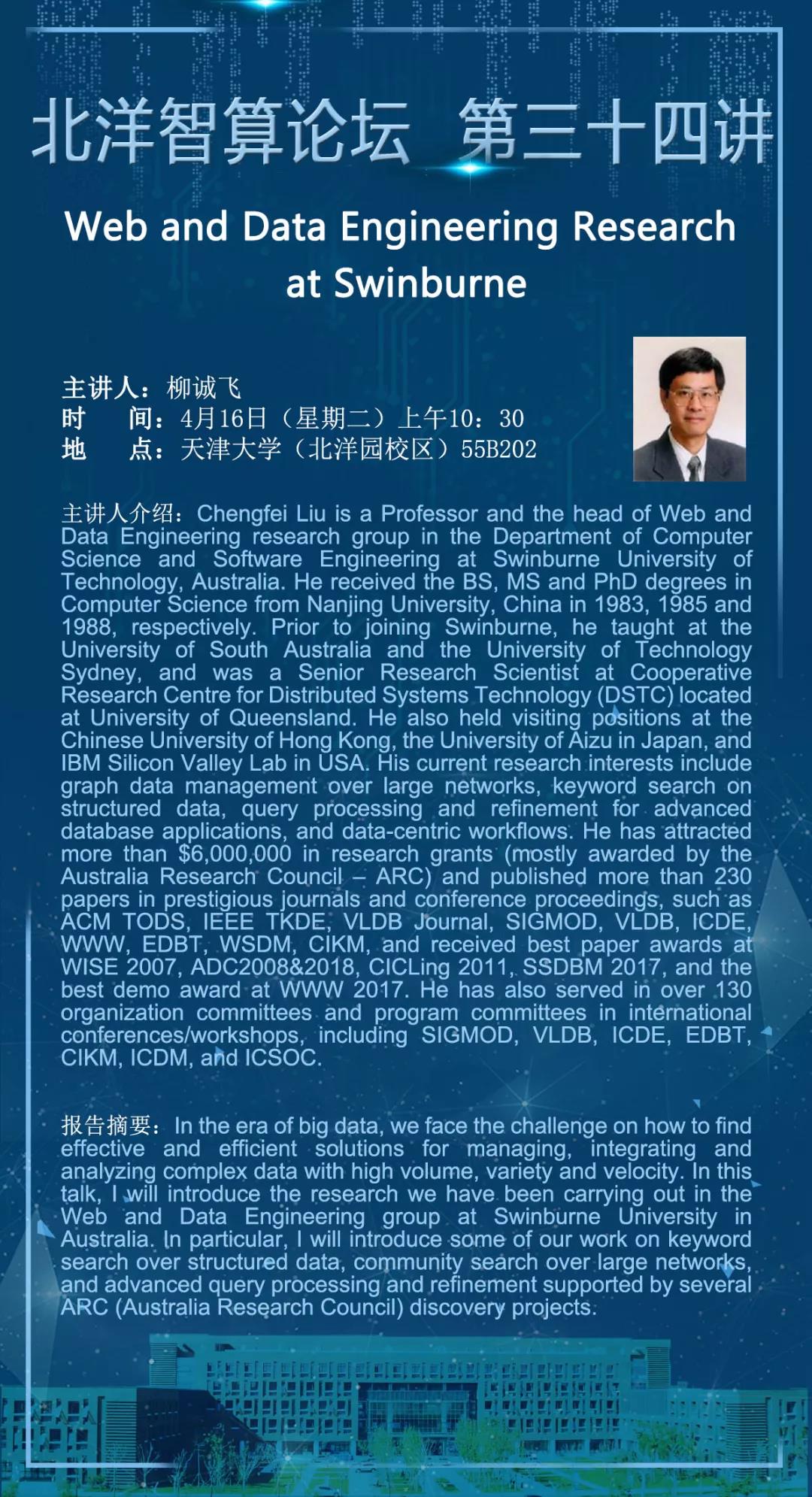 北洋智算论坛 | 第三十四讲预告:Web and Data Engineering Research at Swinburne