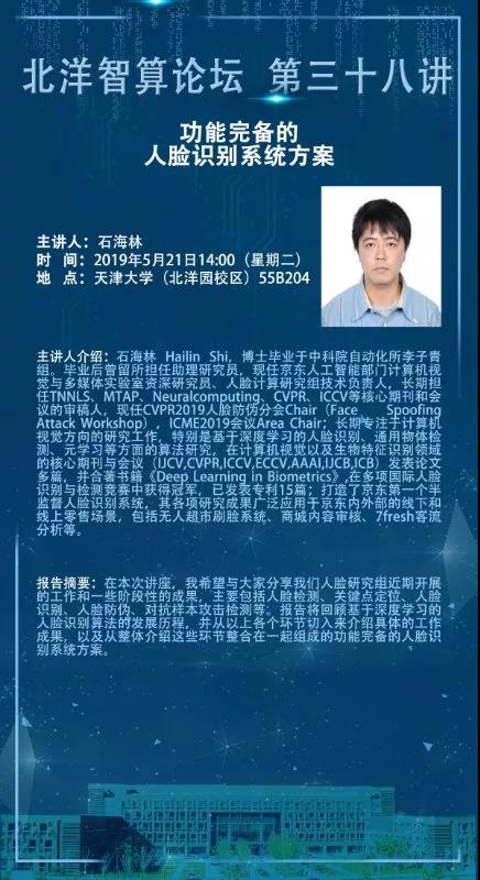 在本次讲座,我希望与大家分享我们人脸研究组近期开展的工作和一些阶段性的成果,主要包括人脸检测、关键点定位、人脸识别、人脸防伪、对抗样本攻击检测等。报告将回顾基于深度学习的人脸识别算法的发展历程,并从以上各个环节切入来介绍具体的工作成果,以及从整体介绍这些环节整合在一起组成的功能完备的人脸识别系统方案。