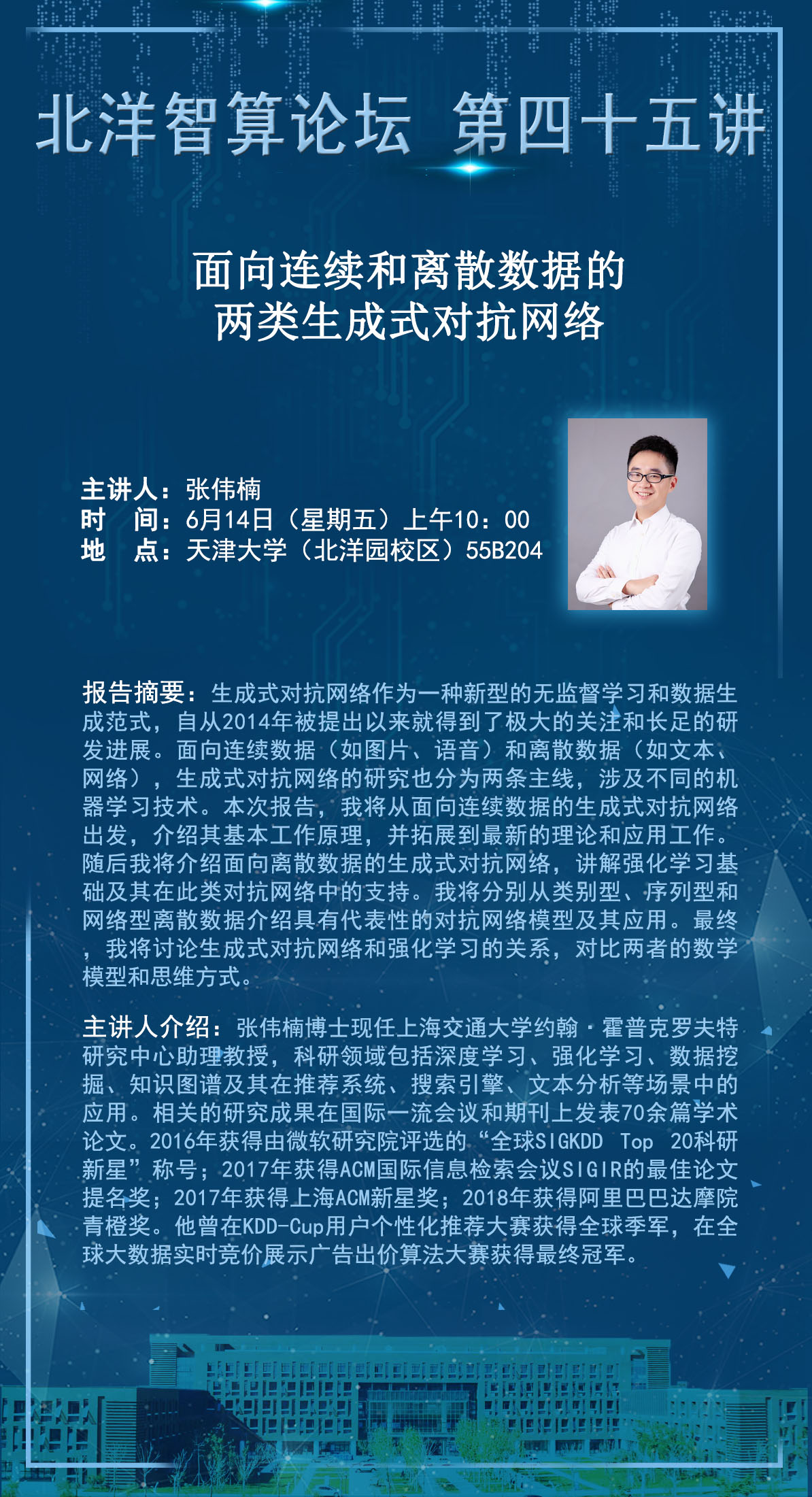 北洋智算论坛 | 面向连续和离散数据的两类生成式对抗网络