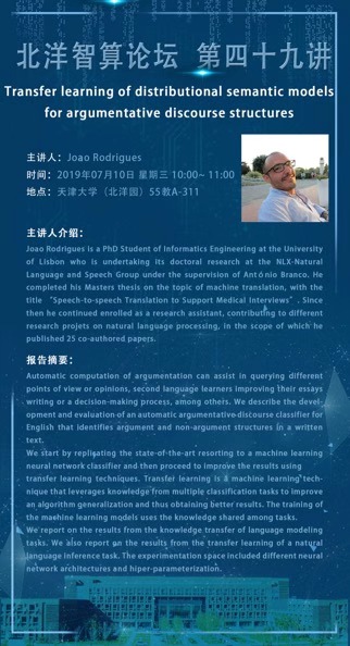 北洋智算论坛 | 议论文话语结构的分布式语义模型中的迁移学习