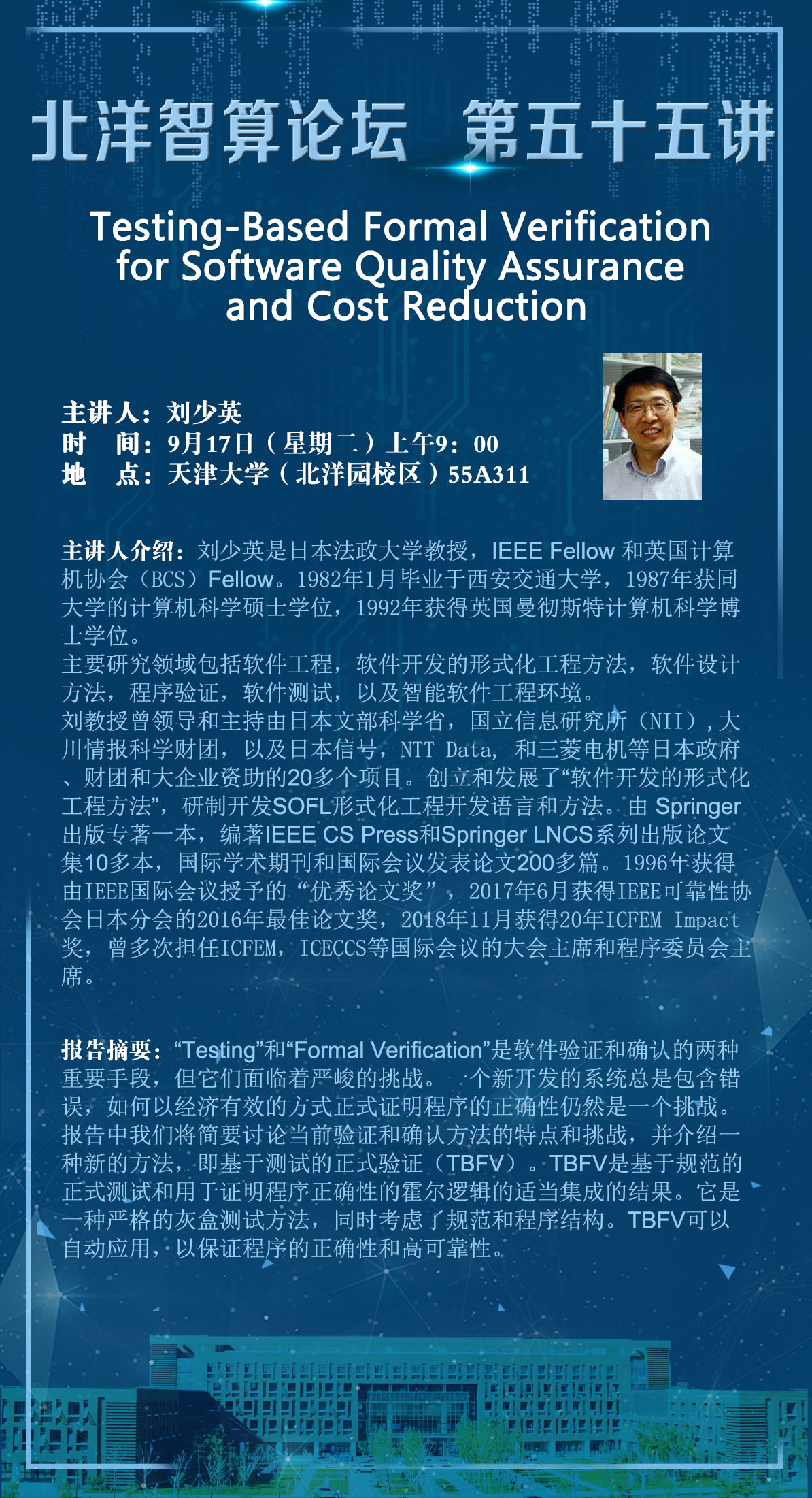 北洋智算论坛 | Testing-Based Formal Verification for Software Quality Assurance and Cost Reduction