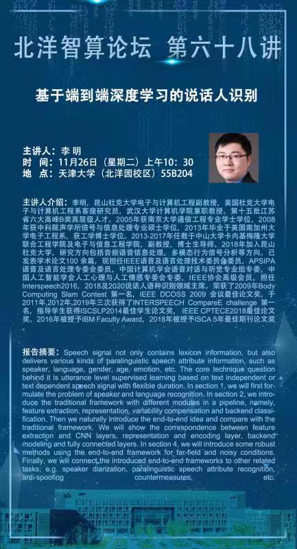 北洋智算论坛 | 基于端到端深度学习的说话人识别