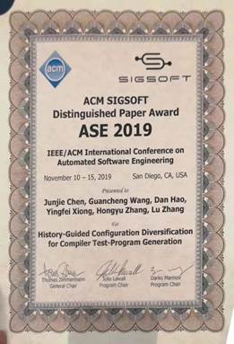 The paper titled History-Guided Configuration Diversification for Compiler Test-Program Generation, a collaborative work by Tianjin University’s College of Intelligence and Computing, Peking University and The University of Newcastle, won the Distinguished Paper Award.