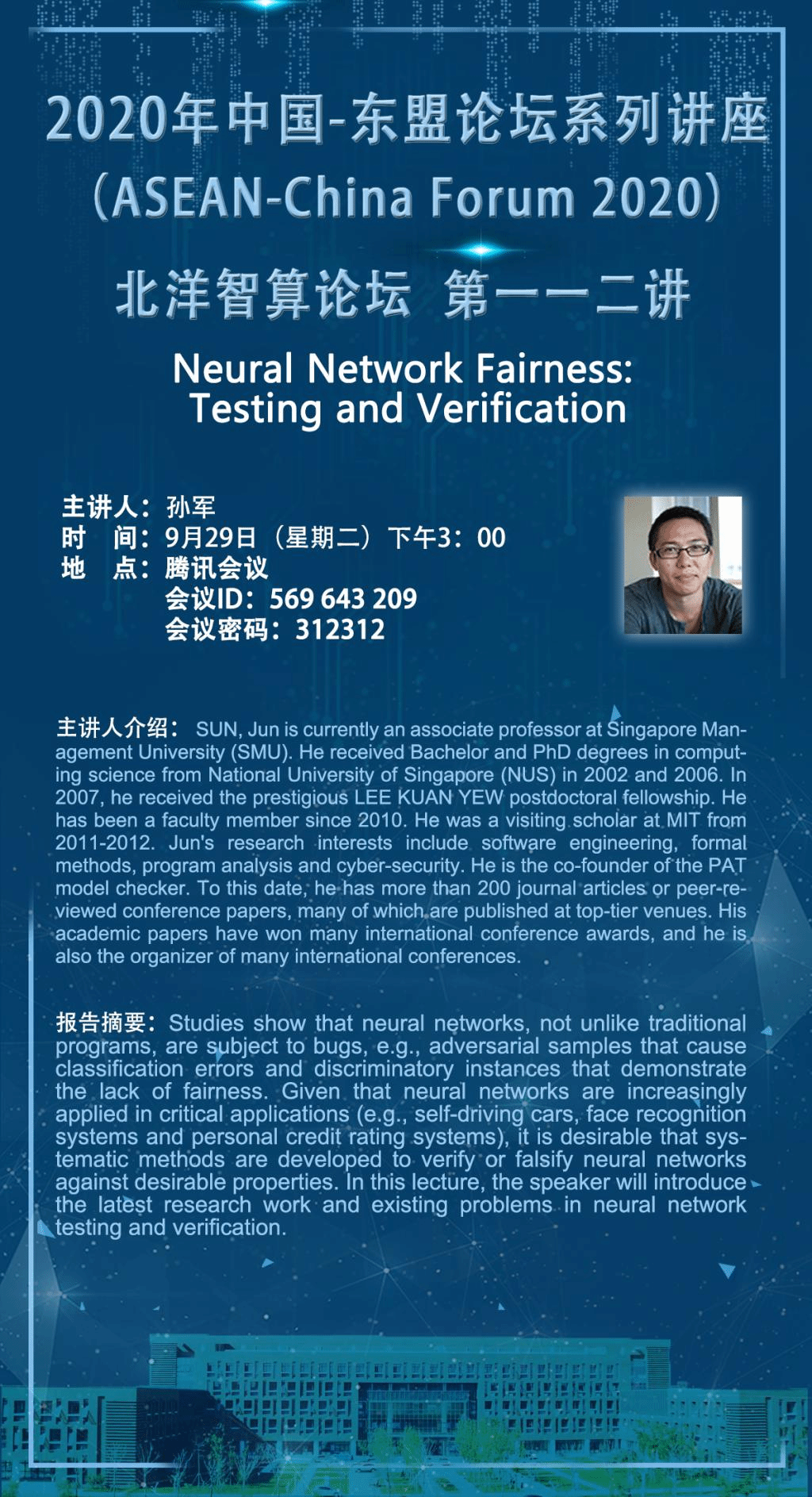 SUN, Jun is currently an associate professor at Singapore Management University (SMU). He received Bachelor and PhD degrees in computing science from National University of Singapore (NUS) in 2002 and 2006. In 2007, he received the prestigious LEE KUAN YEW postdoctoral fellowship. He has been a faculty member since 2010. He was a visiting scholar at MIT from 2011-2012. Jun's research interests include software engineering, formal methods, program analysis and cyber-security. He is the co-founder of the PAT model checker. To this date, he has more than 200 journal articles or peer-reviewed conference papers, many of which are published at top-tier venues. His academic papers have won many international conference awards, and he is also the organizer of many international conferences.
