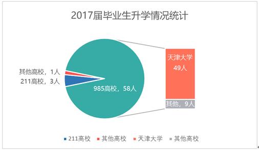 我院2017届毕业生在国(境)内升学共有62人。其中,本科生55人,占本科生总毕业人数的38.73%(软件工程专业45人,占软工总毕业生人数的40.18%;动画专业10人,占动画总毕业人数的21.74%);硕士研究生7人,占硕士总毕业生人数的10.14%。958高校58人,211高校3人,其他高校1人。具体情况如图所示: