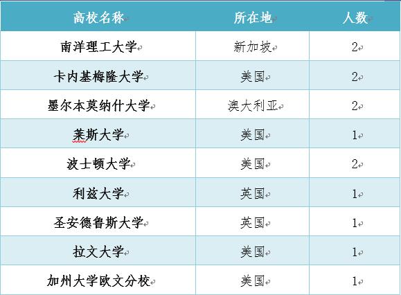 2018届毕业生去往美国18人,英国2人,新加坡2人,澳大利亚2人,日本1人。