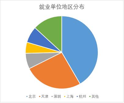 从图中看出,在北京地区就业的学生占就业总人数的41.6%;在天津地区就业的学生占就业总人数的26.0%;在杭州地区就业的学生占就业总人数的7.3%;在深圳地区就业的学生占就业总人数的6.9%;在上海地区就业的学生占就业总人数的4.9%;其他地区就业的学生占就业总人数的13.3%。