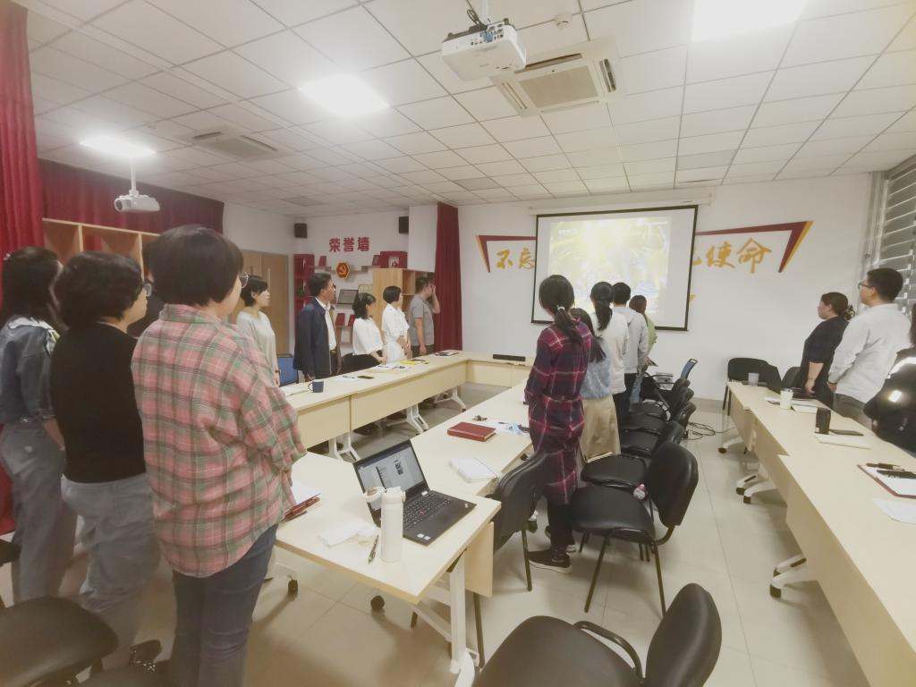 会上,各小组在播放《英雄赞歌》、《怒吼吧,黄河》、《我和我的祖国》、《红梅赞》、《天耀中华》等红色歌曲MV的同时,介绍了歌曲创作的背景故事,回顾历史、展望未来。学部综合服务中心国艳老师更是利用专业特长,在边演唱边讲解的过程中为大家进行深度解读,情到浓时,支部成员更是情不自禁进行了合唱。